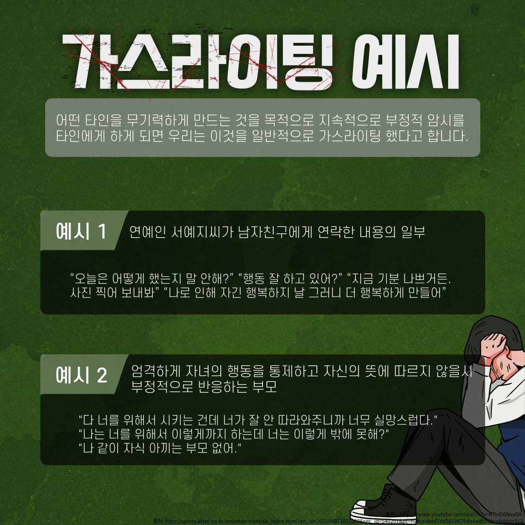 이렇듯, 생각보다 흔하게 일어나고 있는 가스라이팅, 잘 모르고 있다가 고통을 받게 될 수도 있으니 가스라이팅 뜻과 자가진단 방법을 꼭 확인하셔서 주변에 가해자 유형의 사람이 있다면 현명하게 대처하시기 바랍니다.