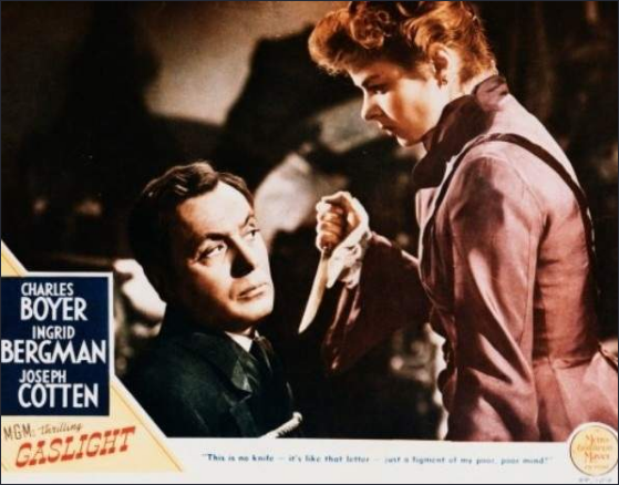 가스라이팅(Gaslighting)은 1938년 희곡 가스등(Gaslight)에서 파생된 심리학 용어입니다. 잉그리드 버그만이 출연한 영화로도 유명한데, 거액의 유산을 상속받은 여인에게 접근해 결혼한 남자가 주변 환경을 조작해 정신병자로 몰아가는 내용입니다.