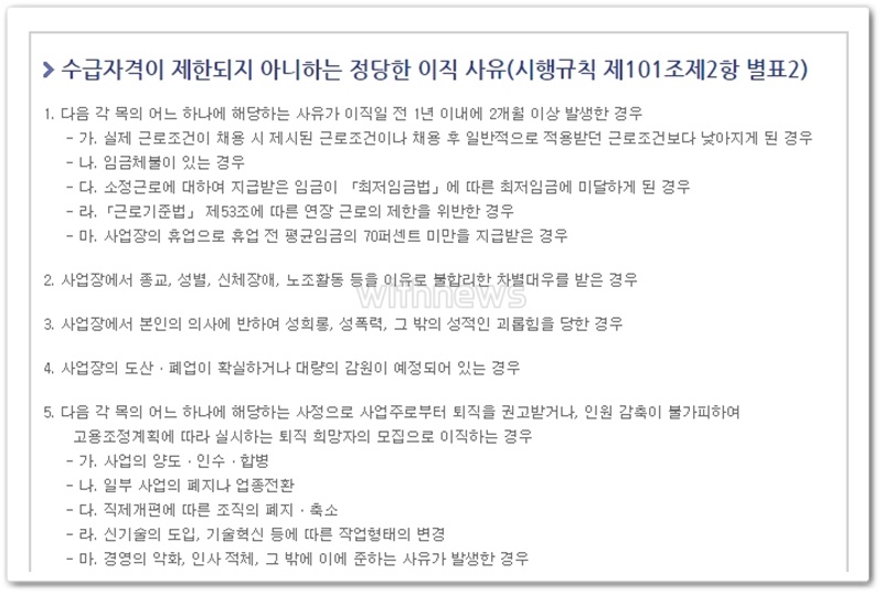 4. 이직 사유가 법 제58조에 따른 수급자격의 제한사유에 해당되지 않는, 자의가 아닌 비자발적 사유