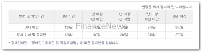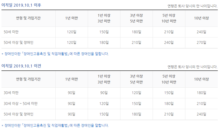 (이직일이 2019.10.1 이전은 퇴직 전 평균임금의 50% × 소정 급여일수)