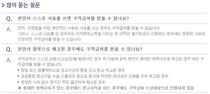 본인이 스스로 사표를 쓰면 구직급여를 받을 수 없나요?