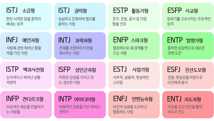 오늘은 이렇게 MBTI 성격 유형검사 무료검사에 대하여 자세하게 알아보았습니다.