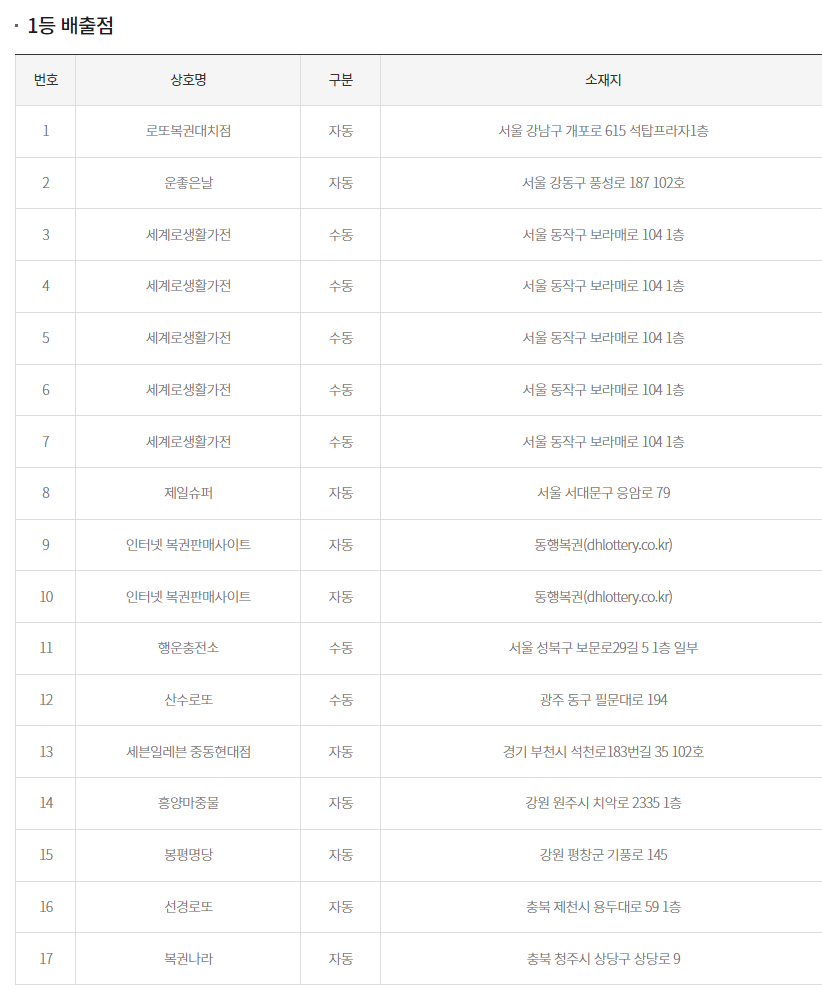 - 추첨일 오후 8시부터 다음날(일요일) 오전 6시까지는 판매가 정지