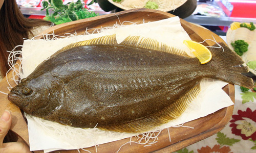 ▷ 광어는 담백하고 쫄깃한 맛 때문에 인기가 많아요.