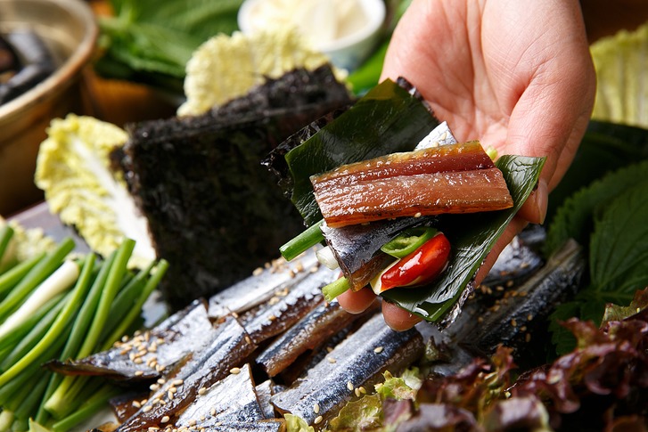 ▷ 과메기만 따로 먹는 것보다는 김이나 미역 등 해조류와 함께 마늘까지 넣어 쌈으로 먹으면 영양과 맛 모두 완벽한 음식인데요.